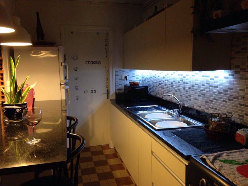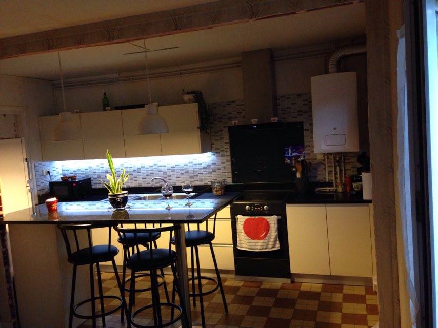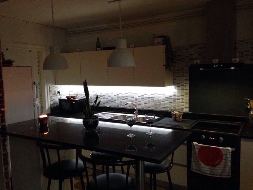 MOBILIER DE CUISINE EN MELAMINA EGGER U108 ST15 ET PUFFERS TECHNO.